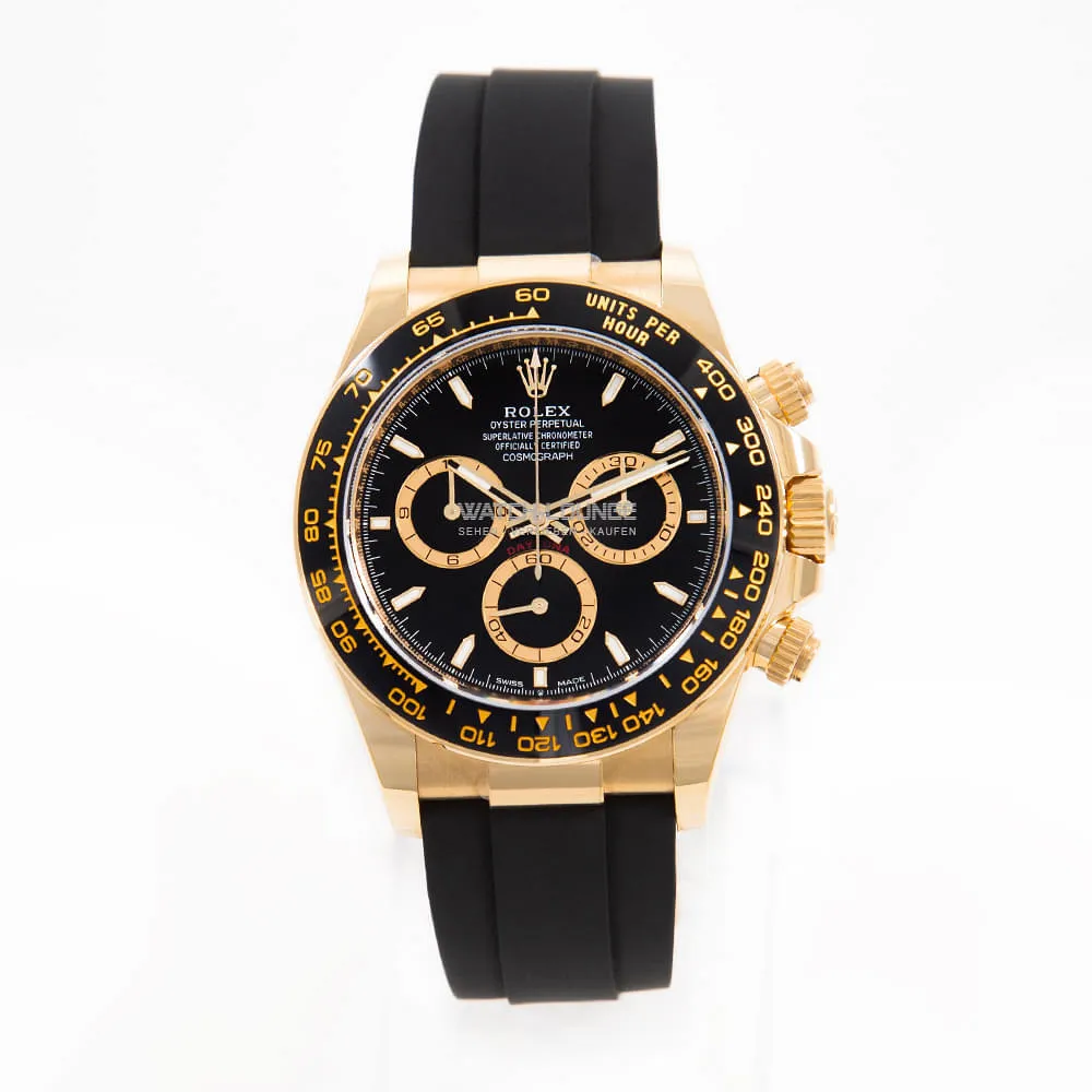 - Original Rolex Daytona in yellow gold with Oysterflex strap.